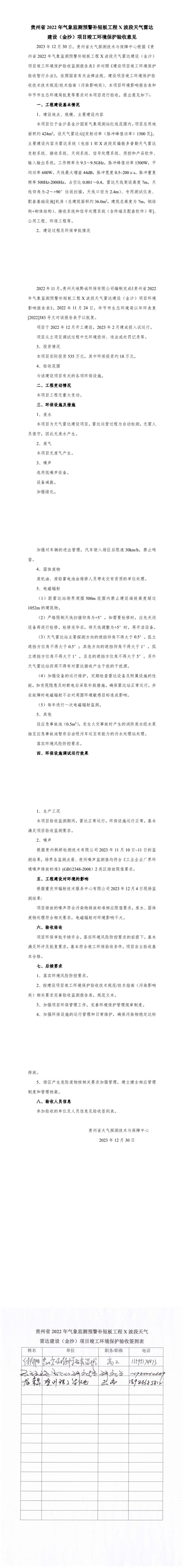 贵州省2022年气象监测预警补短板工程X波段天气雷达建设(金沙)项目竣工环境保护验收监测报告表的公示