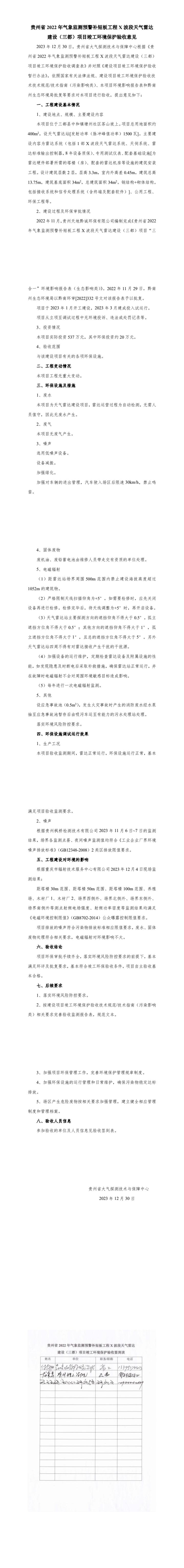 贵州省2022年气象监测预警补短板工程X波段天气雷达建设(三都)项目竣工环境保护验收监测报告表的公示