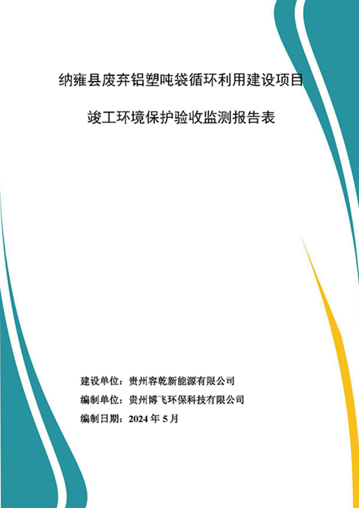 《纳雍县废弃铝塑吨袋循环利用建设项目竣工环境保护验收监测报告表》由贵州博飞环保科技有限公司编制;