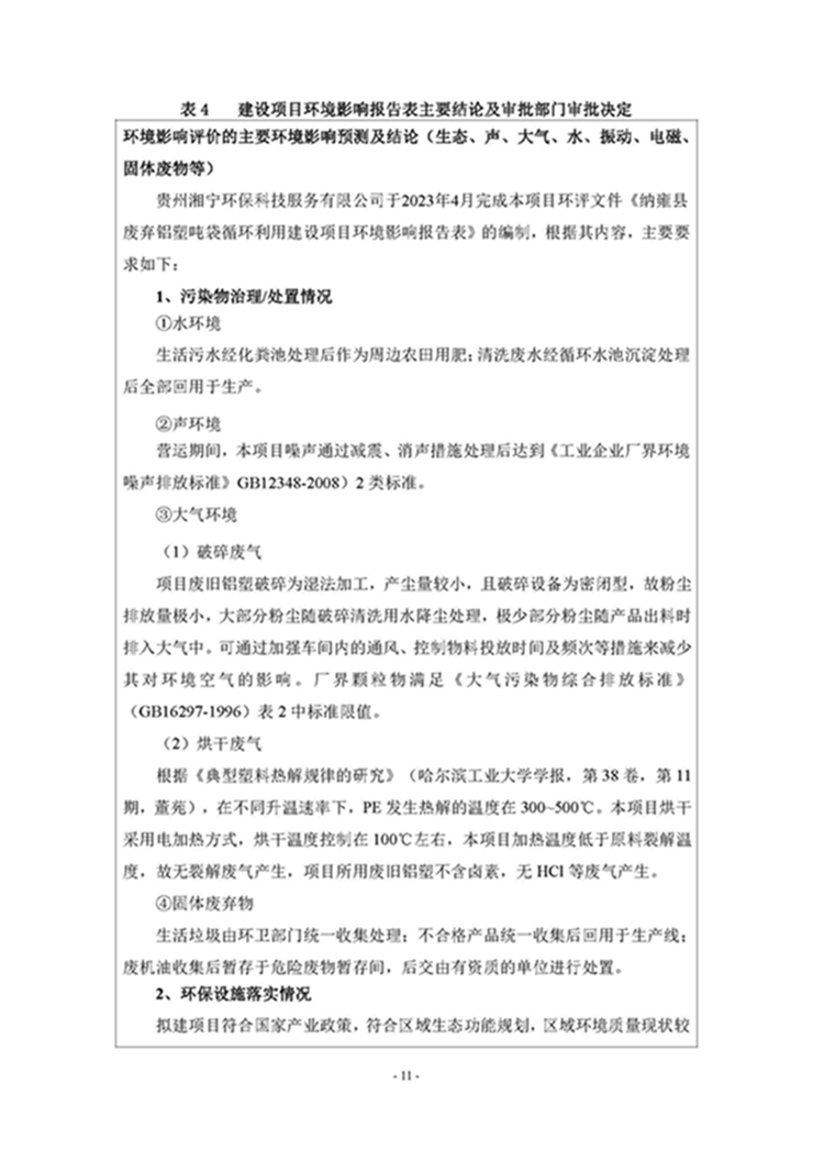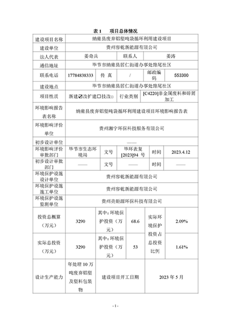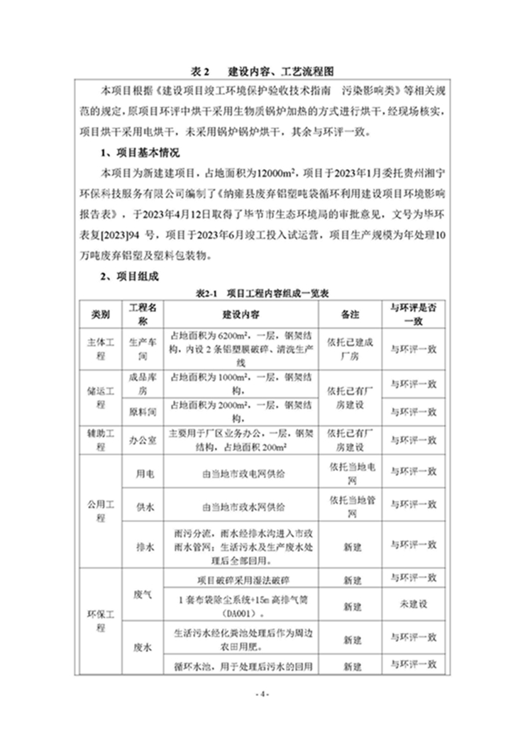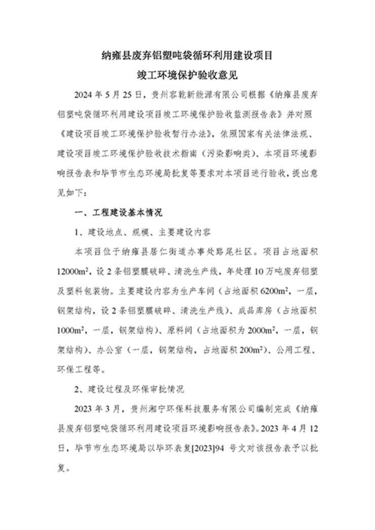 项目名称:纳雍县废弃铝塑吨袋循环利用建设项目