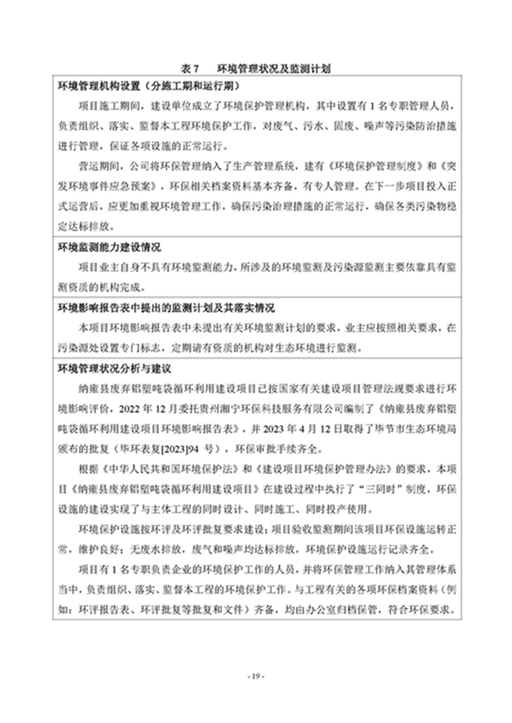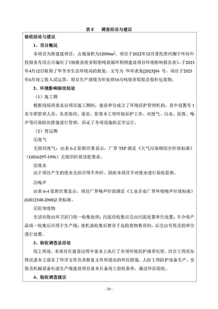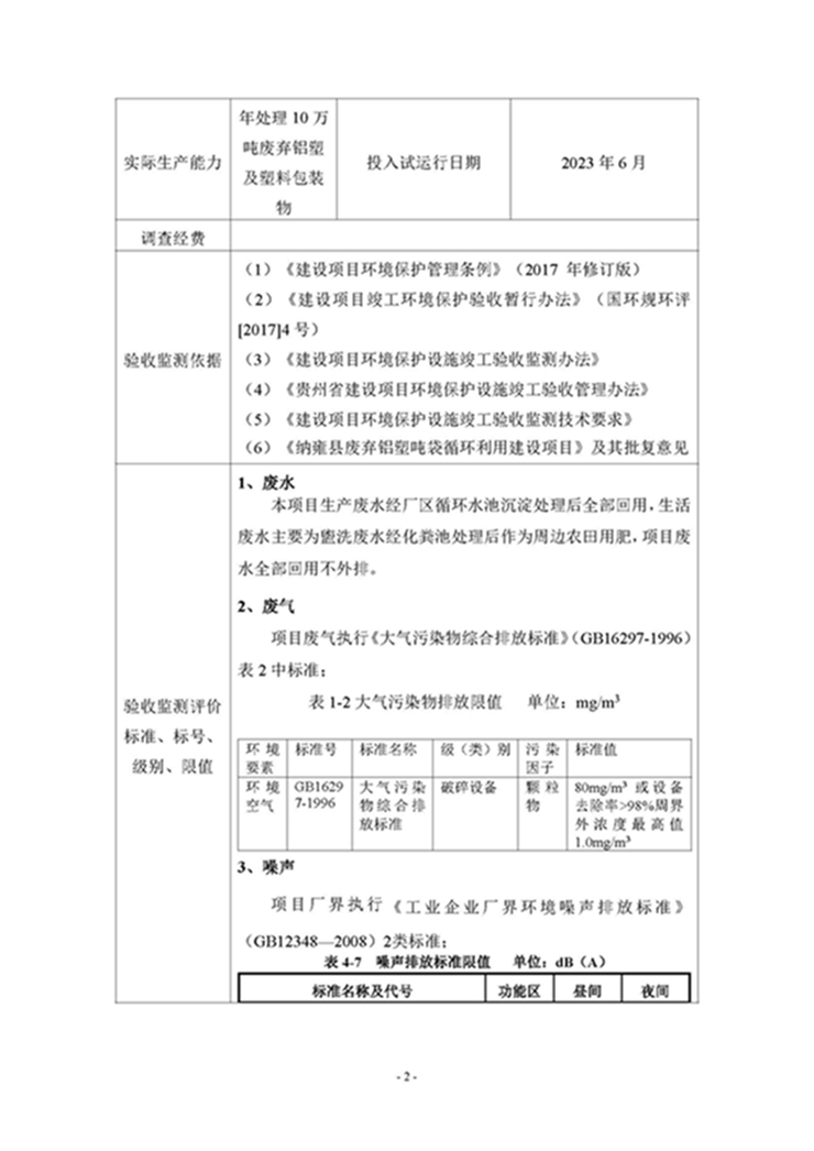 纳雍县废弃铝塑吨袋循环利用建设项目竣工环境保护验收监测报告表