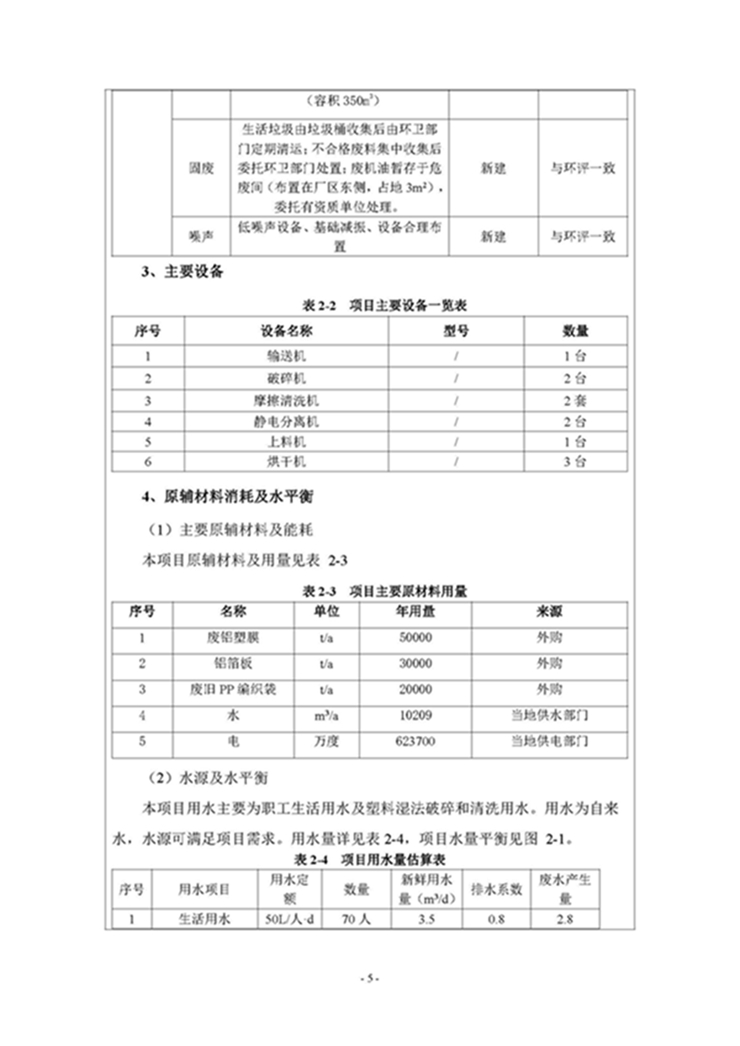建设规模:年处理10万吨废弃铝塑及塑料包装物