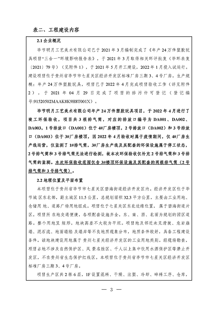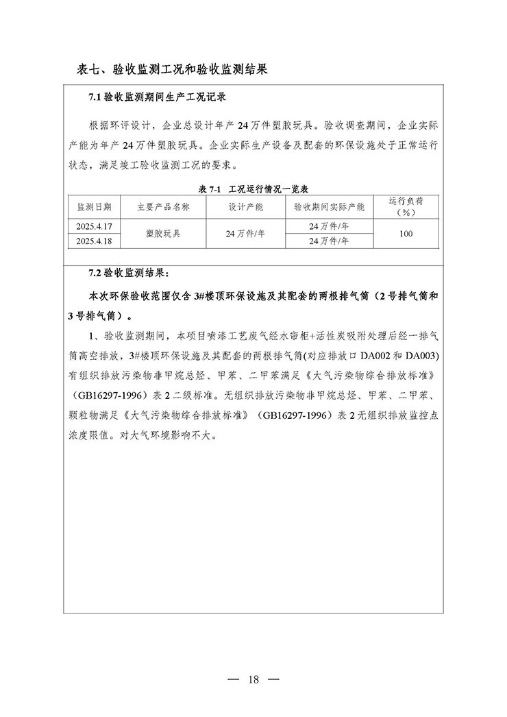 根据《国务院关于修改<建设项目竣工环境保护管理条例>的决定》(国务院令第682号),以及环保部《关于发布<建设项目竣工环境保护保护验收暂行办法>的公告》(国环规环评[2017]4号),现将《年产24万件塑胶玩具项目3#厂房环保设施竣工环境保护竣工环境保护验收监测报告》公示如下: