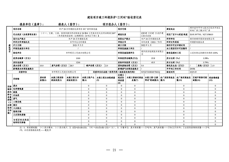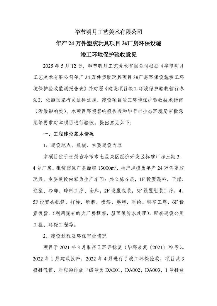 项目名称:年产24万件塑胶玩具项目3#厂房环保设施