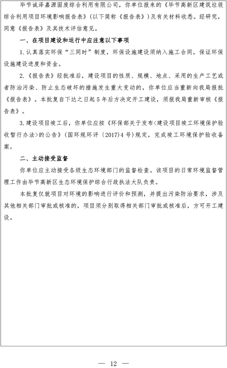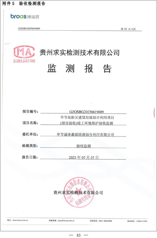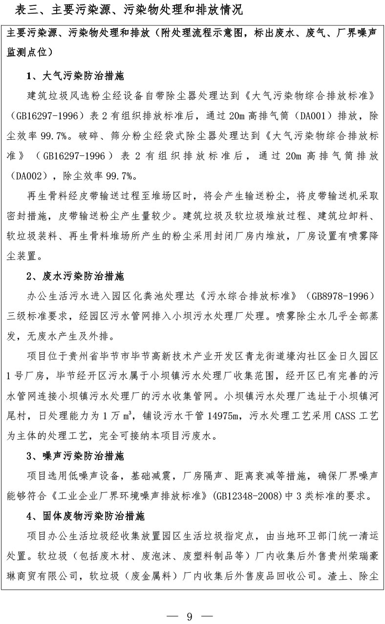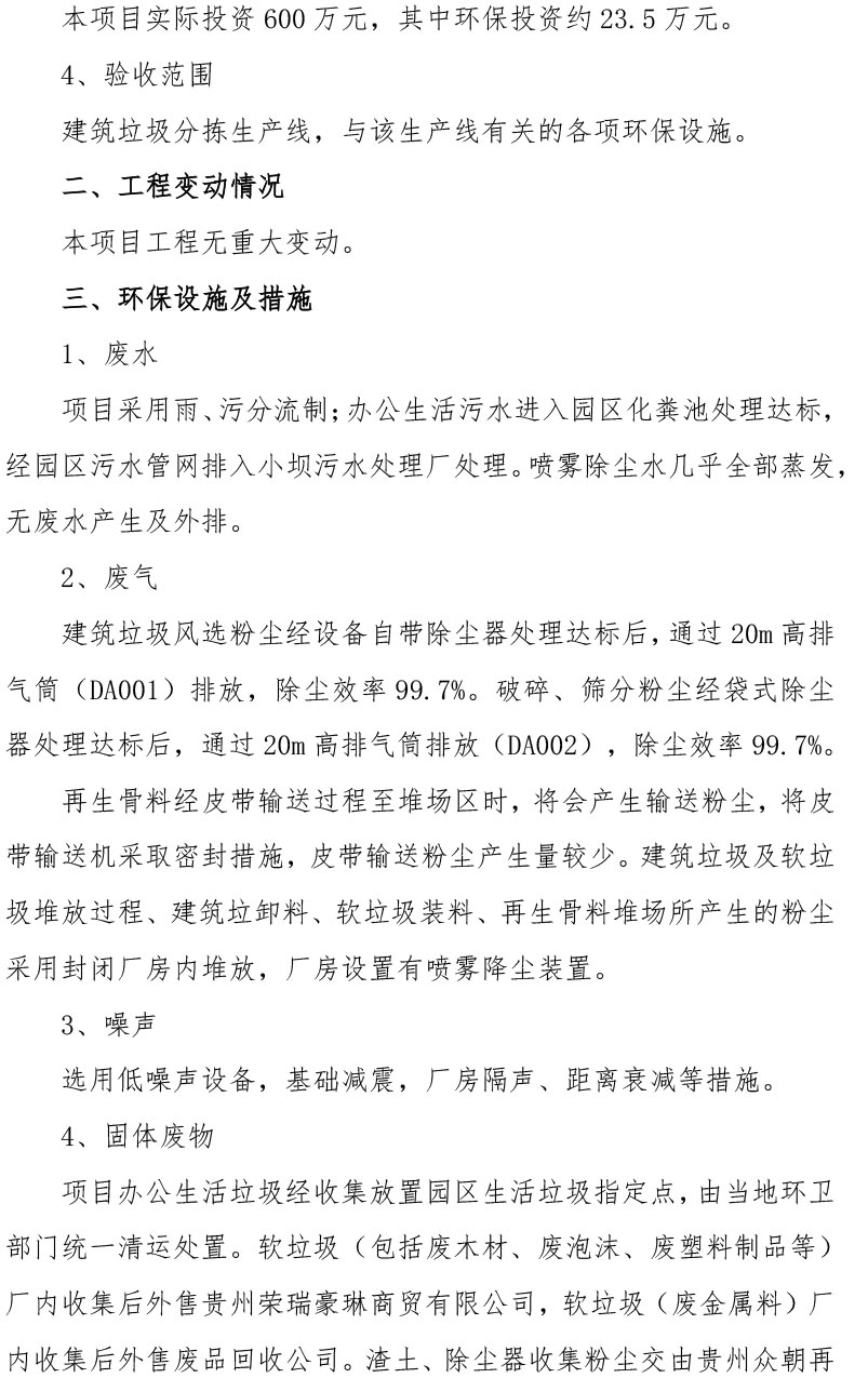 根据《国务院关于修改<建设项目竣工环境保护管理条例>的决定》(国务院令第682号),以及环保部《关于发布<建设项目竣工环境保护保护验收暂行办法>的公告》(国环规环评[2017]4号),现将《毕节高新区建筑垃圾综合利用项目(部分验收)竣工环境保护验收监测报告表》公示如下: