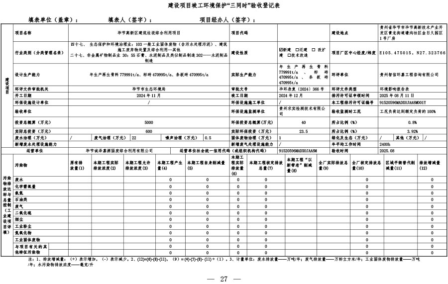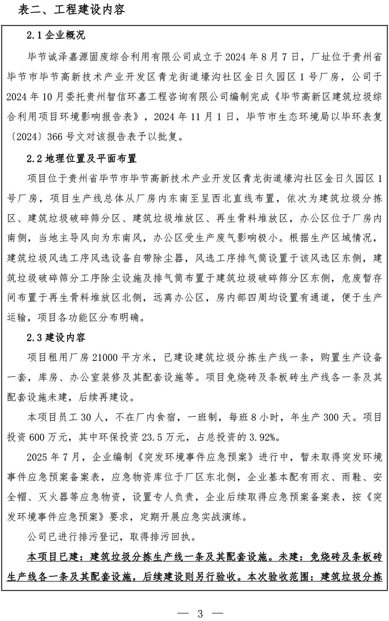 建设单位:毕节诚泽嘉源固废综合利用有限公司