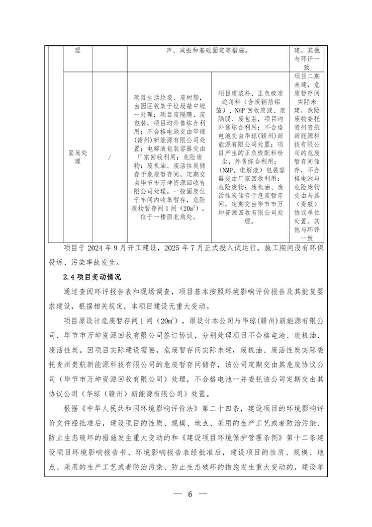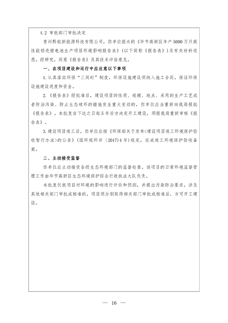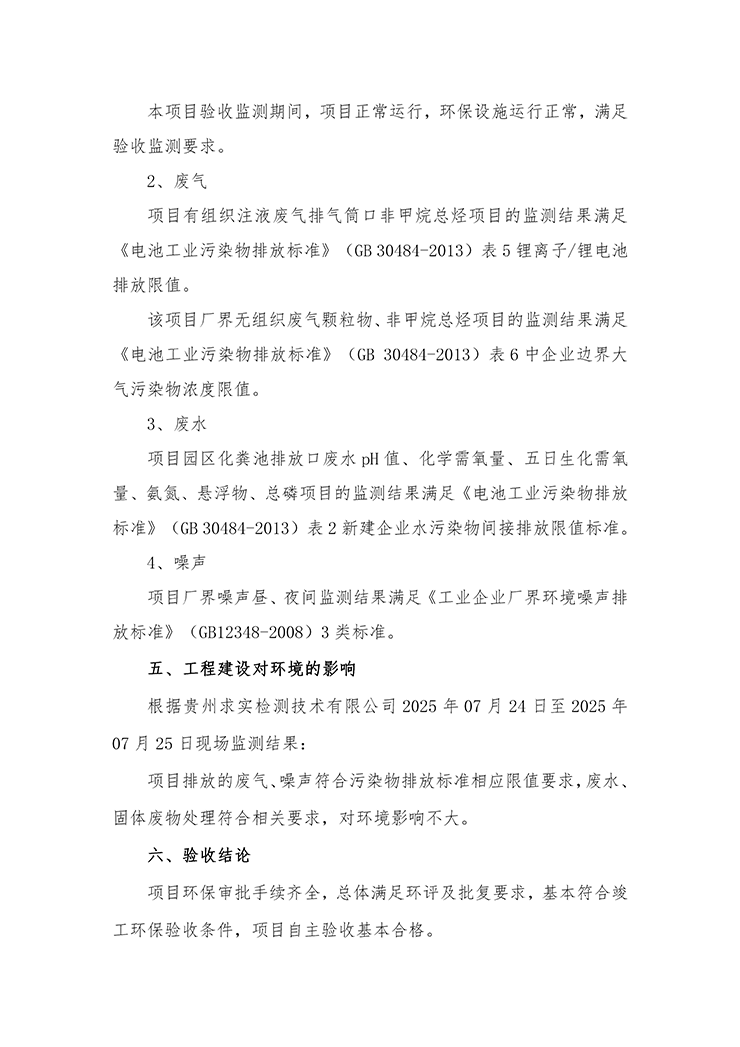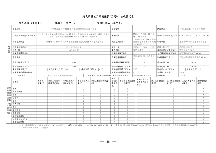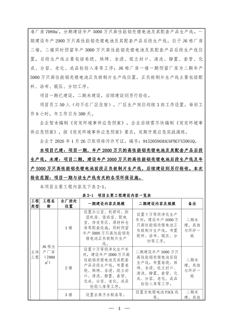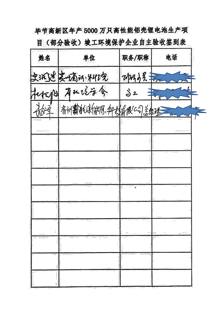项目名称:毕节高新区年产5000万只高性能铝壳锂电池生产项目(部分验收)