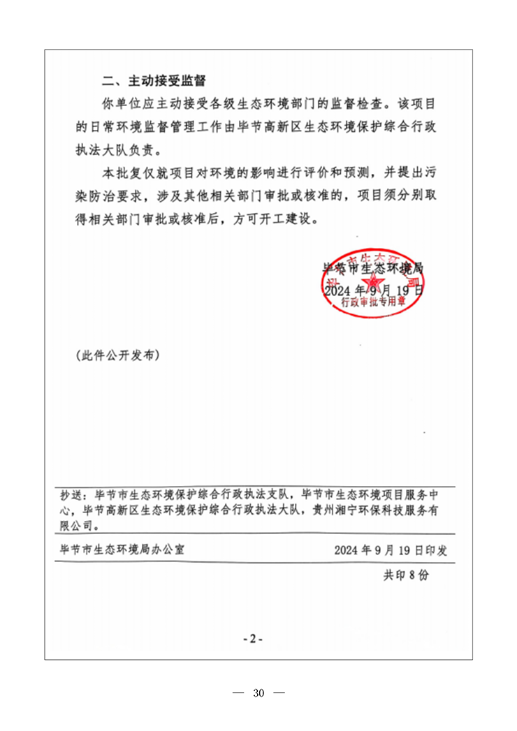 根据《国务院关于修改<建设项目竣工环境保护管理条例>的决定》(国务院令第682号),以及环保部《关于发布<建设项目竣工环境保护保护验收暂行办法>的公告》(国环规环评[2017]4号),现将《毕节高新区年产5000万只高性能铝壳锂电池生产项目(部分验收)竣工环境保护验收监测报告表》公示如下: