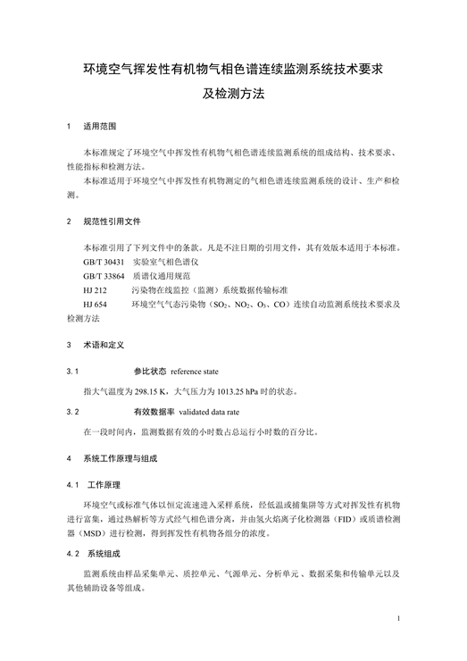 本标准适用于环境空气中挥发性有机物测定的气相色谱连续监测系统的设计、生产和检测。