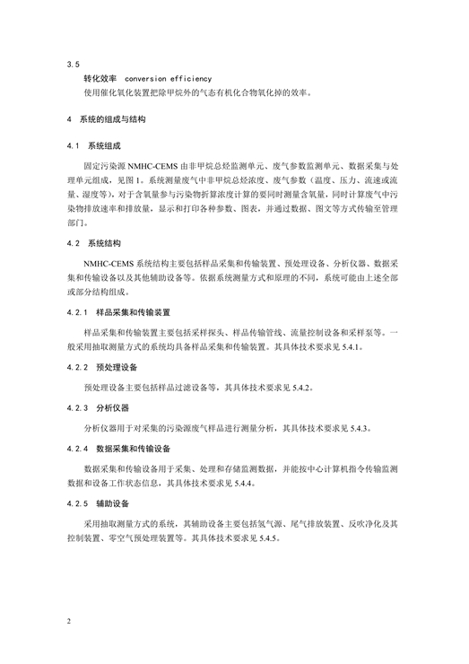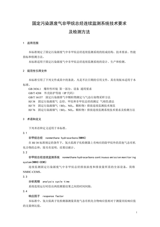 • 本标准规定了固定污染源废气中非甲烷总烃连续监测系统的组成结构、技术要求、性能指标和检测方法。