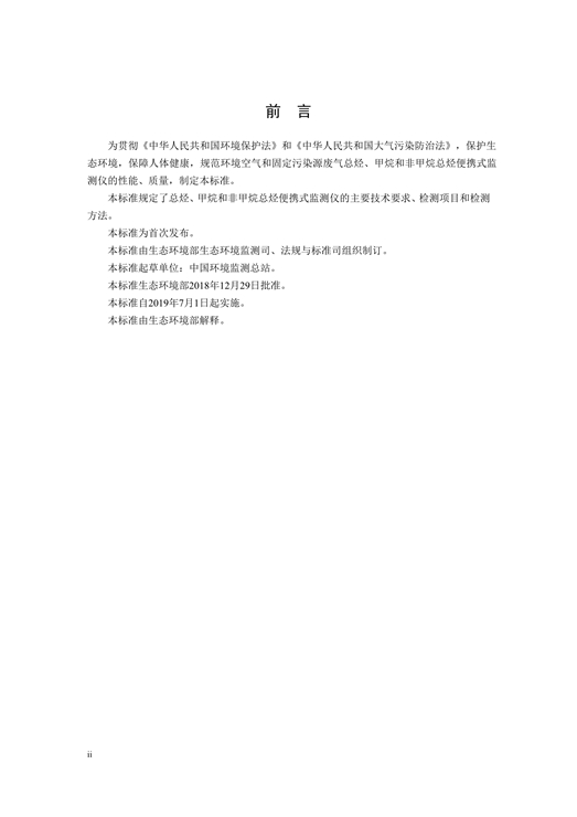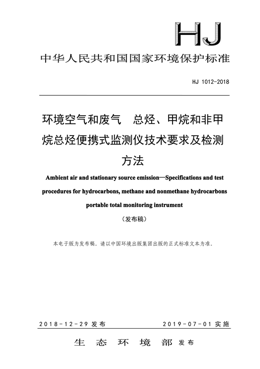 • 为贯彻《中华人民共和国环境保护法》和《中华人民共和国大气污染防治法》,保护生态环境,保障人体健康,规范环境空气和固定污染源废气总烃、甲烷和非甲烷总烃便携式监测仪的性能、质量,制定本标准。