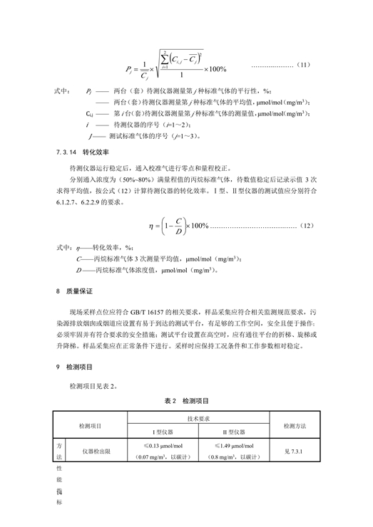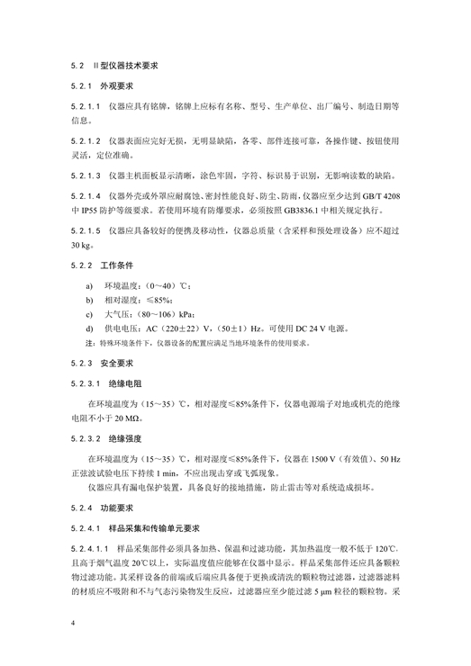 针对应用于不同场合的仪器,规定了相应仪器的检测范围。用于环境空气及环境空气污染事故应急监测的仪器本标准称为Ⅰ型仪器,用于固定污染源废气监测的仪器本标准称为Ⅱ型仪器。