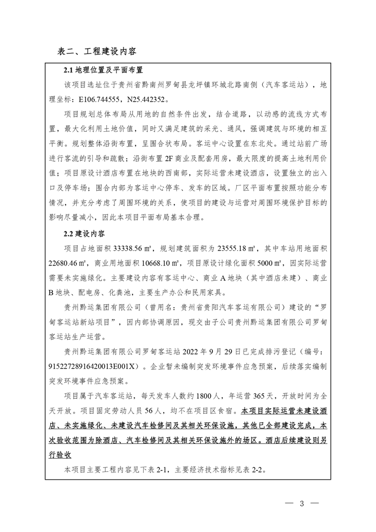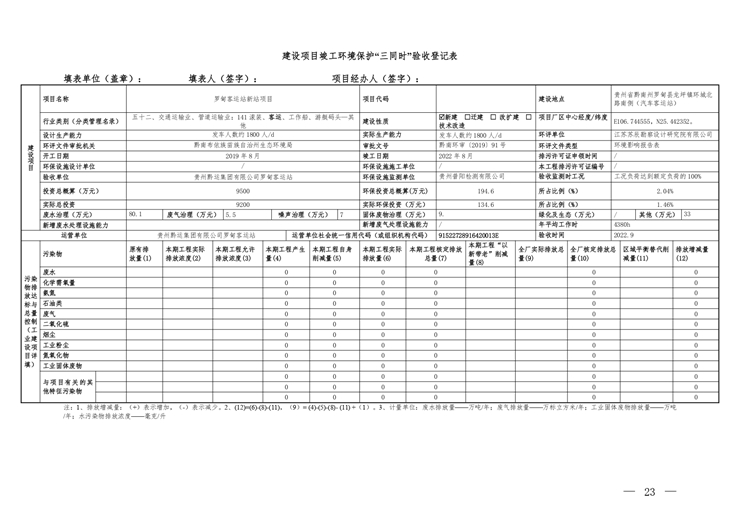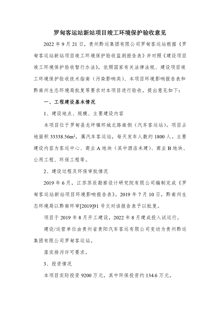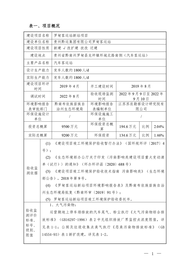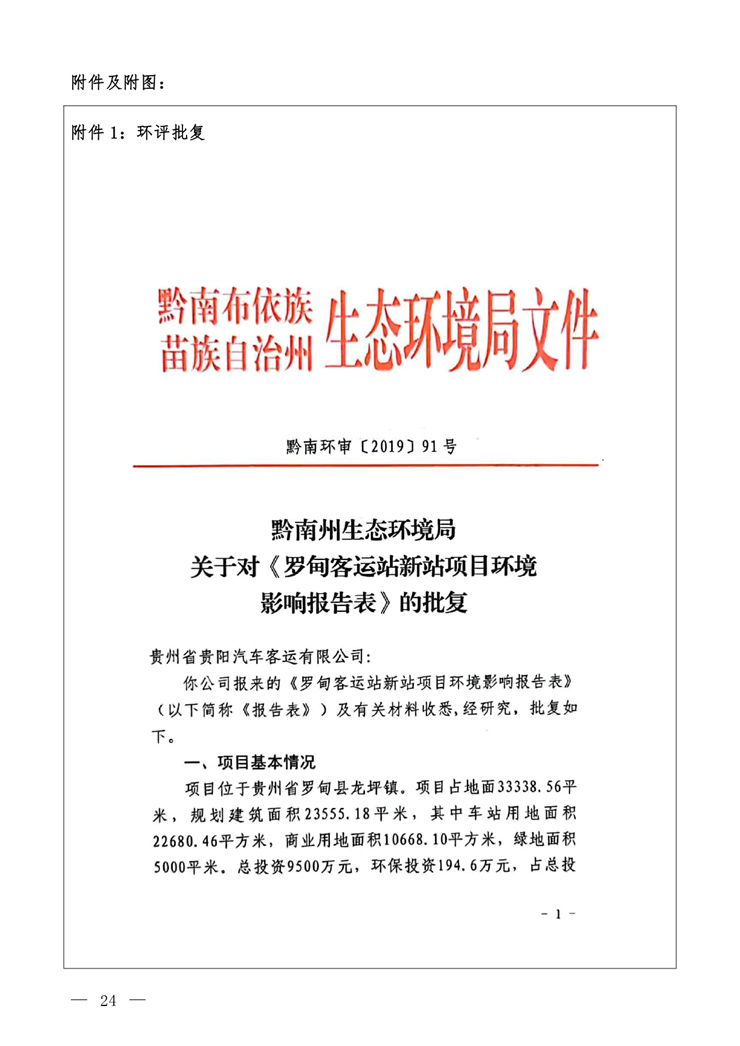 根据《国务院关于修改<建设项目竣工环境保护管理条例>的决定》(国务院令第682号),以及环保部《关于发布<建设项目竣工环境保护保护验收暂行办法>的公告》(国环规环评[2017]4号),现将《罗甸客运站新站项目竣工环境保护验收监测报告表》公示如下: