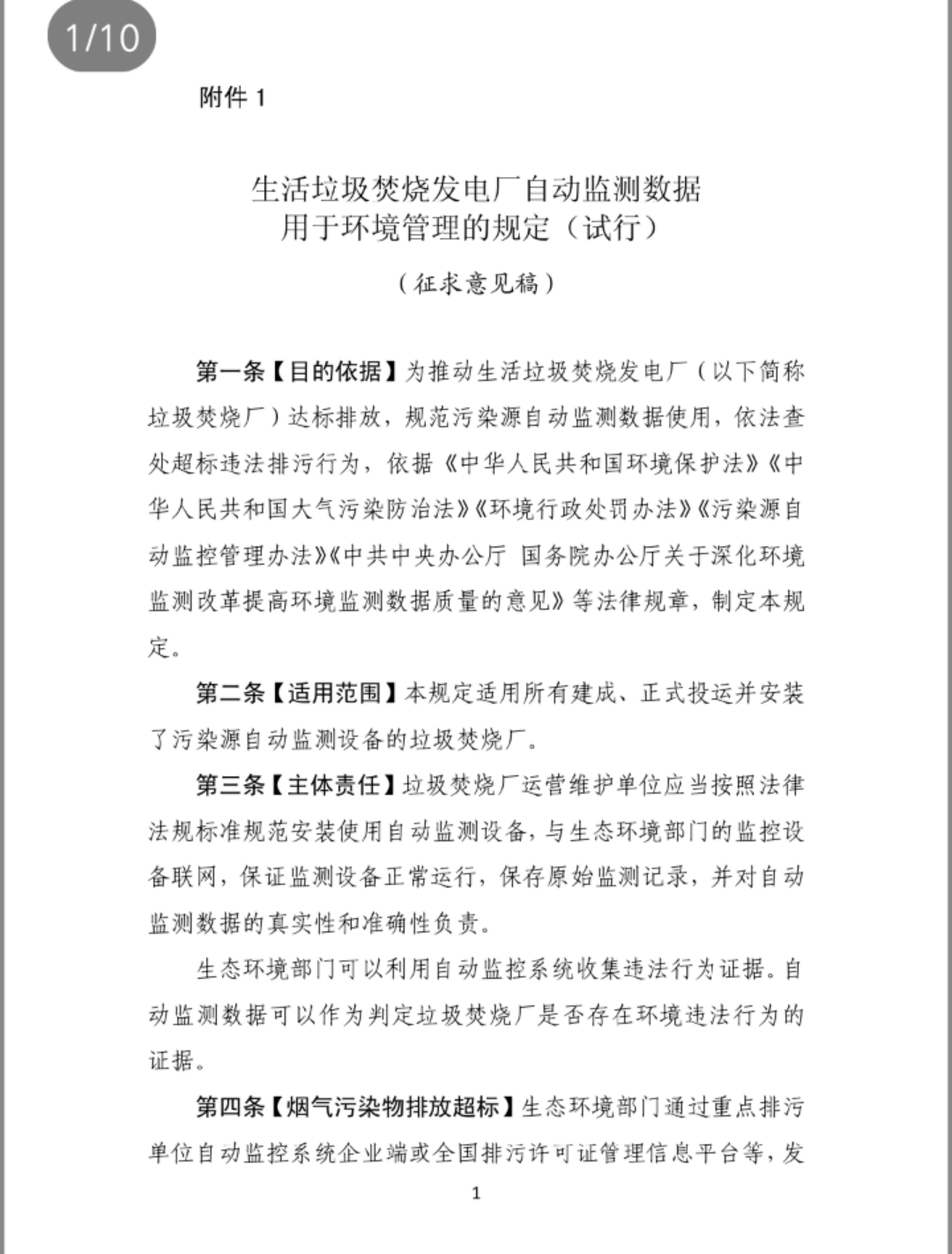 附件:1.生活垃圾焚烧发电厂自动监测数据用于环境管理的规定(试行)(征求意见稿)