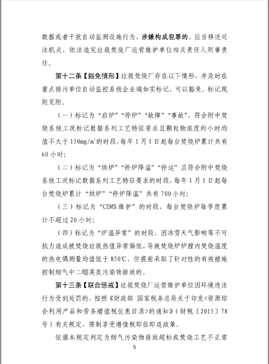 生活垃圾焚烧发电厂自动监测数据用于环境管理的规定(试行)(征求意见稿)