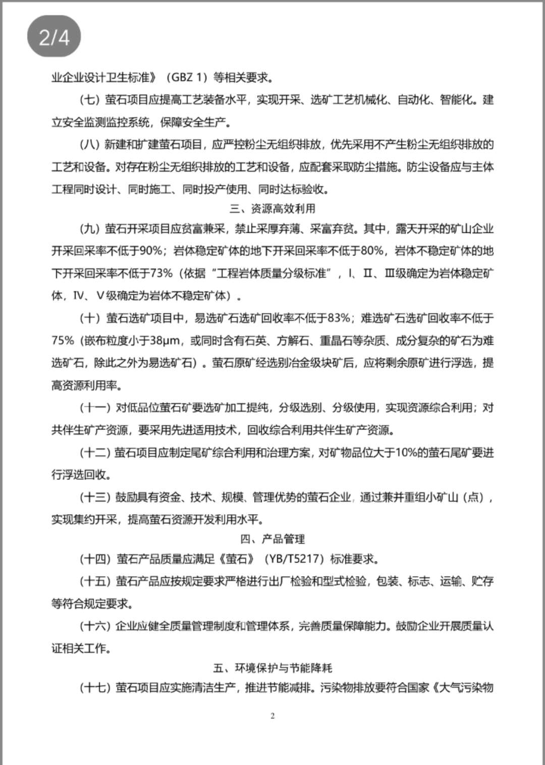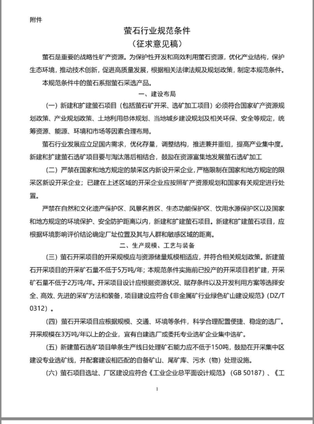 《萤石行业规范条件(征求意见稿)》